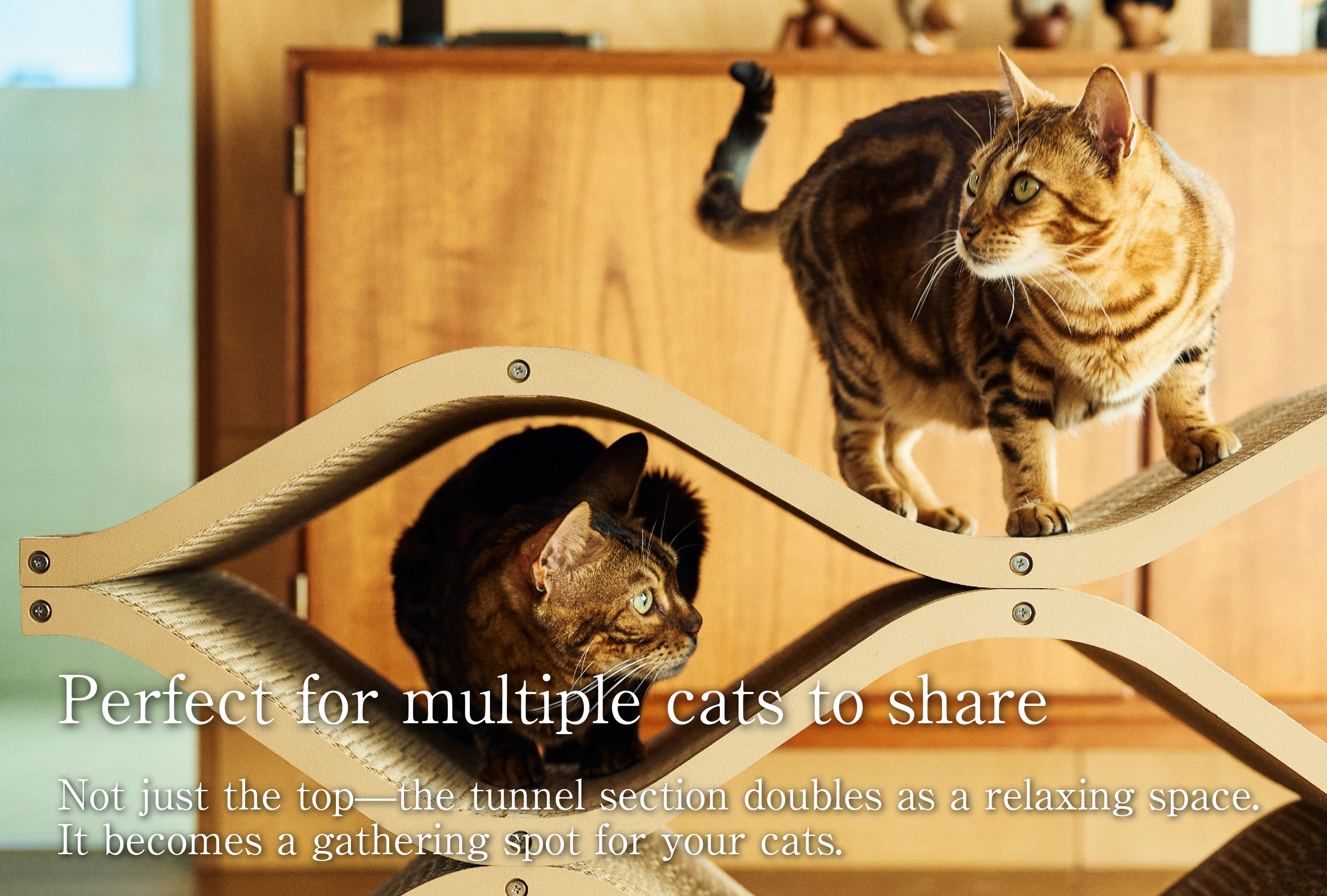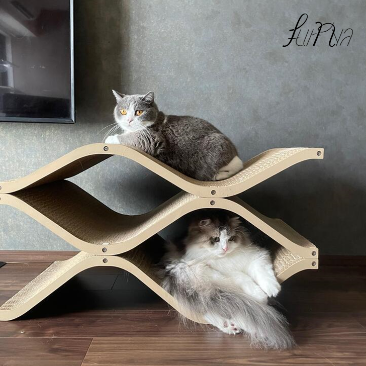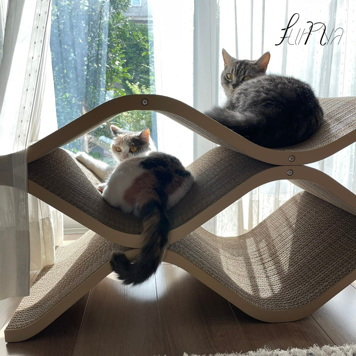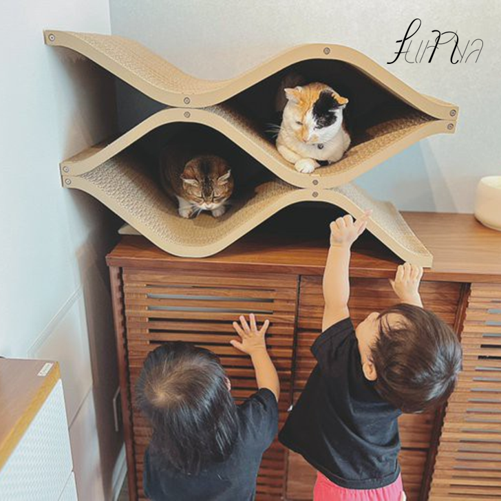 初めての物にあまり興味を示さない子達なので使ってくれるかなと思いましたが、初日から中に入って眠ったり、爪も研いだりしてくれています。サイズは少し大きいですが、ぐらつき等もなく、オシャレなので部屋に置いてあっても気になりません。